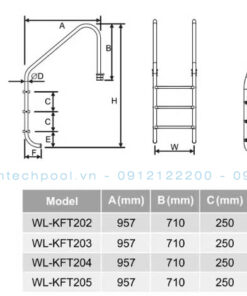–Số bậc thang: Số bậc thang phụ thuộc vào độ sâu của bể bơi.